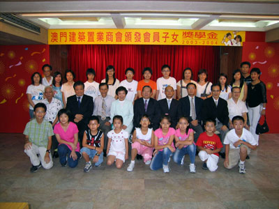 在本會禮堂舉行二O0三年至二 OO四年度會員子女獎學金頒獎禮,出席主持及頒獎的負責人有副會長莫均益、區金蓉,副理事長劉永誠、謝思訓,常務理事梁炳照,理事羅炳燊、李廣志、區秉光、監事盧文興及獲獎同學、家長等數十人,氣氛熱鬧。